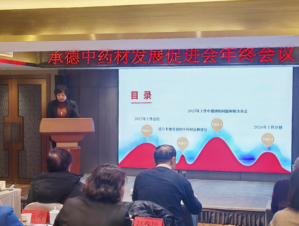 大會以“凝心聚力,賡續(xù)奮斗,共譜承德中藥材高質(zhì)量發(fā)展新篇章”為主題,邀請了承德市委市政府以及農(nóng)業(yè)、林業(yè)、統(tǒng)計、科技、市場等相關(guān)局領(lǐng)導(dǎo)和承德醫(yī)學(xué)院專家以及承德市相關(guān)中藥材種植加工企業(yè)、合作社共同出席。會長楊素君做了2025年中藥材發(fā)展促進(jìn)會的工作總結(jié)和2026年工作計劃,總結(jié)了不足,明確了未來協(xié)會發(fā)展的方向。